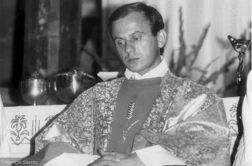Urząd ds. Wyznań wystosowywał do Episkopatu kolejne ostre pisma. Popiełuszko przy swoim słabym zdrowiu prowadził wyniszczający tryb życia. Nie dbał o siebie, bagatelizował dolegliwości, mimo zaleceń, nie wyrażał zgody na pozostanie w szpitalu. Ciągle pracował. We wrześniu 1983 r. w porozumieniu z Lechem Wałęsą zorganizował pierwszą pielgrzymkę ludzi pracy na Jasną Górę (idea ta kontynuowana jest do dziś). Rok później otrzymywał anonimowe telefony: „Jeśli pojedziesz po raz drugi na Jasną Górę – zginiesz”. Pojechał. Anonimy z pogróżkami otrzymywał już wcześniej. Liczył się ze śmiercią. Zagrożenia było też świadome jego otoczenie. Na prośbę hutników kard. Glemp zaproponował Popiełuszce wyjazd na studia do Rzymu, nie chciał go jednak do wyjazdu przymuszać. Ks. Jerzy wyjechać nie chciał. Tłumaczył, że nie może zostawić ludzi, którzy mu zaufali, że byłaby to zdrada. Przyjaciele wspominają, że jego ostatnie miesiące to czas porządkowania spraw, głębokiej modlitwy i częstych spowiedzi. Ostatnią odbył 18 października, w przeddzień porwania. Męczennik Pierwszy nieudany zamach na życie księdza miał miejsce 13 października. Była to próba upozorowania wypadku samochodowego. 19 października 1984 r. ks. Jerzy w towarzystwie swego kierowcy Waldemara Chrostowskiego udał się do Bydgoszczy, gdzie w kościele Świętych Polskich Męczenników prowadził rozważania do tajemnic różańca. Ostatnie słowa tych rozważań brzmiały: „Módlmy się, byśmy byli wolni od lęku, zastraszenia, ale przede wszystkim od żądzy odwetu i przemocy”. W drodze powrotnej, wieczorem, samochód księdza został zatrzymany przez patrol drogowy. W rzeczywistości w milicyjne mundury przebrani byli funkcjonariusze SB – Grzegorz Piotrowski, Waldemar Chmielewski i Leszek Pękala. Waldemarowi Chrostowskiemu niemal cudem udało się wyswobodzić – gdyby nie to, śmierć ks. Jerzego stałaby sie zbrodnią nieznanych sprawców. Mordercy działali w poczuciu bezkarności. Od swego przełożonego Adama Pietruszki otrzymali specjalne przepustki, które zwalniały ich od wszelkich kontroli. Ksiądz skrępowany i z kneblem na ustach bity był kilkakrotnie do nieprzytomności drewnianą pałką. Gdy na tamie pod Włocławkiem wrzucali do Wisły obciążone kamieniami zmasakrowane ciało w foliowym worku, ks. Popiełuszko już prawdopodobnie nie żył. Ciało odnaleziono dopiero 30 października. Przez cały ten czas o powrót ks. Jerzego modliła się cała Polska. Wiadomość o porwaniu i morderstwie kapłana obiegła cały świat. Jego pogrzeb 3 listopada 1984 r. zgromadził jak się szacuje od 600 do 800 tys. ludzi z całego kraju.